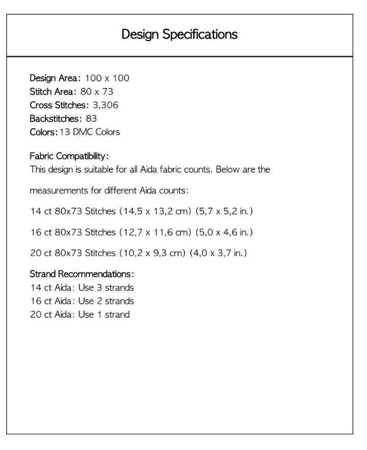 16 ct 80x73 Stitches (12,7 x 11,6 cm) (5,0 x 4,6 in.)